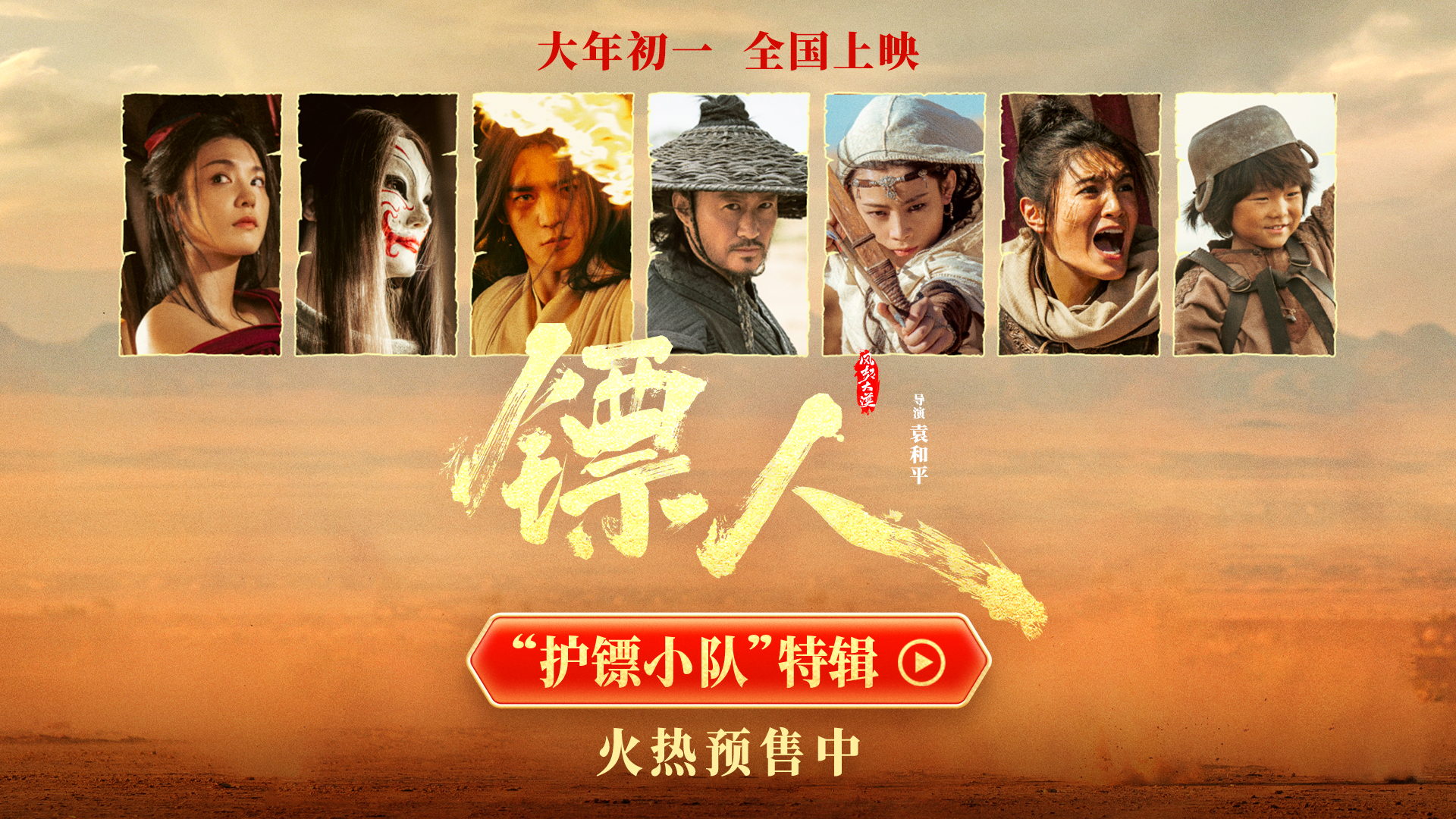 电影《镖人》由袁和平执导,吴京、俞白眉监制,吴京、谢霆锋、于适、陈丽君、孙艺洲、此沙、李云霄领衔主演,梁家辉特别演出,张晋友情主演,惠英红友情演出,张译友情客串,李连杰特别友情出演,刘耀文、熊瑾怡、莒谦朗、白那日苏、梁壁荧、文俊辉、董思成、林秋楠、景瓷、张艺泷、李嘉辉主演,寇占文、代乐乐、释彦能、徐向东、淳于珊珊、孟鹤堂、于荣光友情出演,将于2026年大年初一全国上映,预售正在火热进行中。