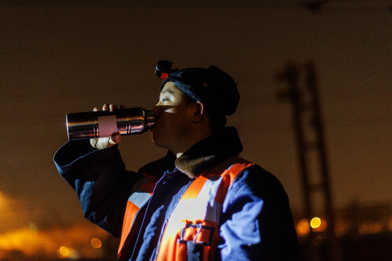 为了抵御寒冷的室外工作环境,坚守岗位的工友们穿的都是特制加厚的衣服。