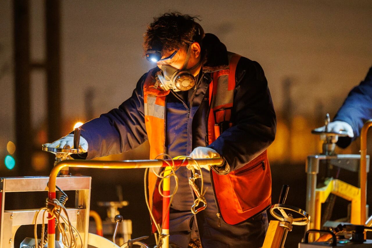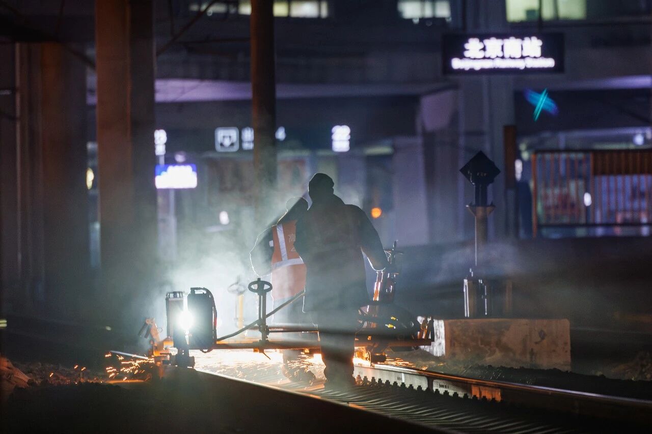 2月10日凌晨,当城市沉入梦乡,北京南站铁路轨道上,8个“00后”铁路工人身着橙色反光防护服,每人推着一台200多斤的打磨机,与钢轨碰撞出串串金红色的火花,如同深夜绽放在铁道上的“钢铁焊花”。