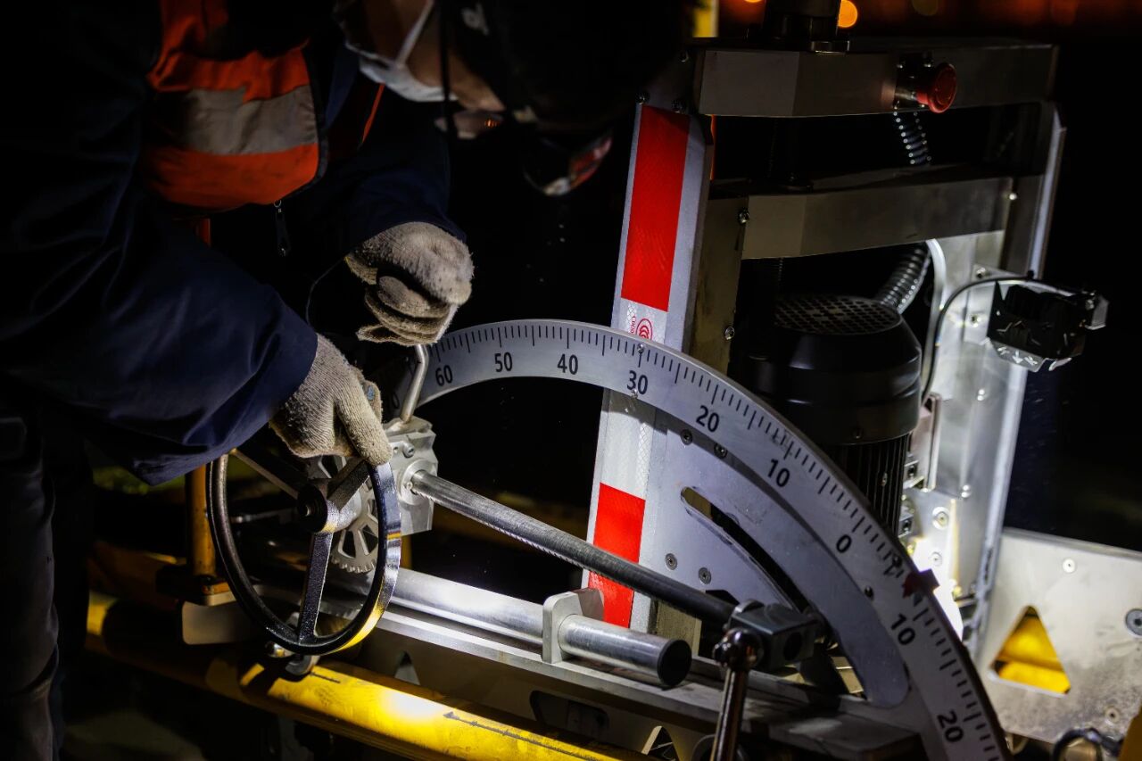 钢轨病害的修复十分考验经验和技术。病害存在于钢轨的不同部位,也有深浅的区别。打磨时,不仅要打磨轨顶面,作用边和非作用边都需要打磨。工人们对于磨头的控制都必须在毫米之间。对于角度的控制,宏观上由带班人掌控,每个工人再根据指令和自己的经验进行角度和数值的调整。