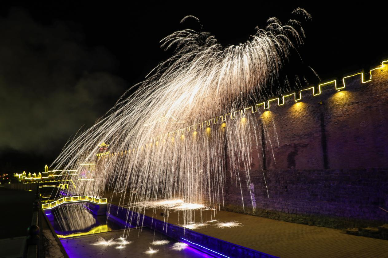 郭峪古城则将变身为一座“明代市井年集”。春节期间,古城围绕“郭峪不夜城·马上有戏”主题,推出多项民俗展演与光影活动,重现明清市井烟火。全天开放的沉浸式剧本杀让游客化身“探案者”,在解谜中深度游览古城;夜幕降临时,“百米流星烟花瀑布”与“千年打铁花”在城墙上空绽放,将节日氛围推向高潮。从卖货郎巡游、抛绣球招亲到科举场景再现、古城密盒脱口秀,一系列互动演出将轮番上演。
