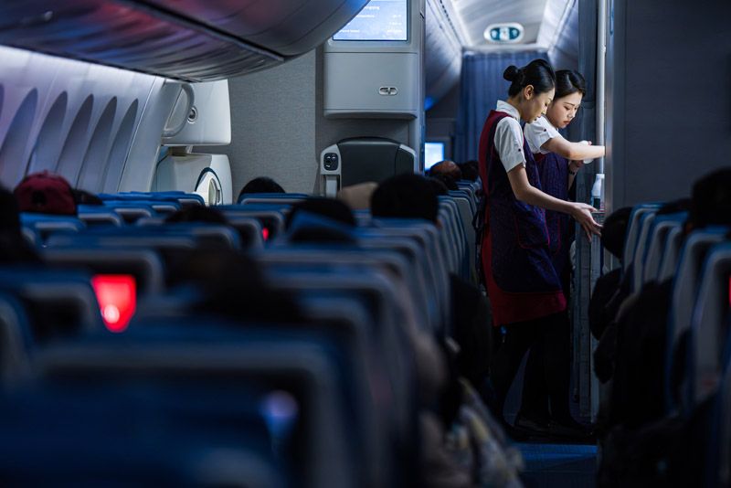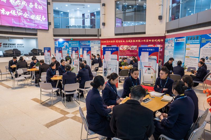 2月11日凌晨4:30,北京首都国际机场,天幕仍缀满寒星。空勤人员拖着飞行箱走进客舱服务部开航前准备会。