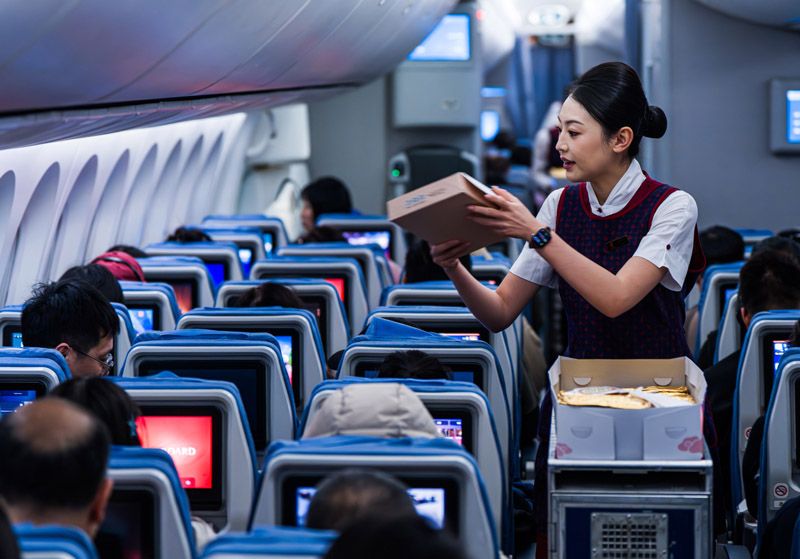 乘务员递餐时总带一句:“小心烫,注意安全。”