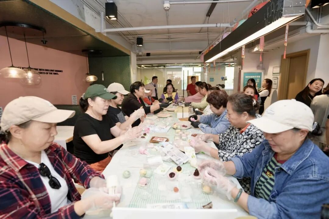豆各庄地区居民在“丰享港湾”驿站制作月饼。郭泉淼 摄
