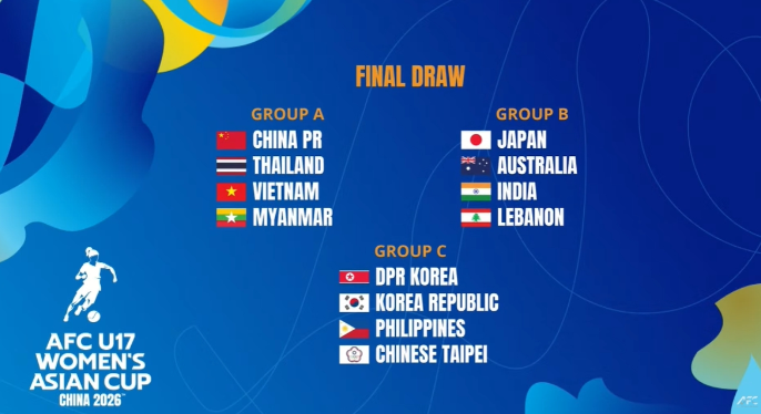 2026年U17亚洲杯抽签出炉 男足、女足分组详情一览