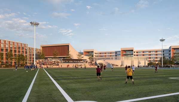 从效果图上可以看出,北京中学东坝北校区项目(高中部)承袭了该校本部的建设风格,呈现红砖灰顶的现代简约风。