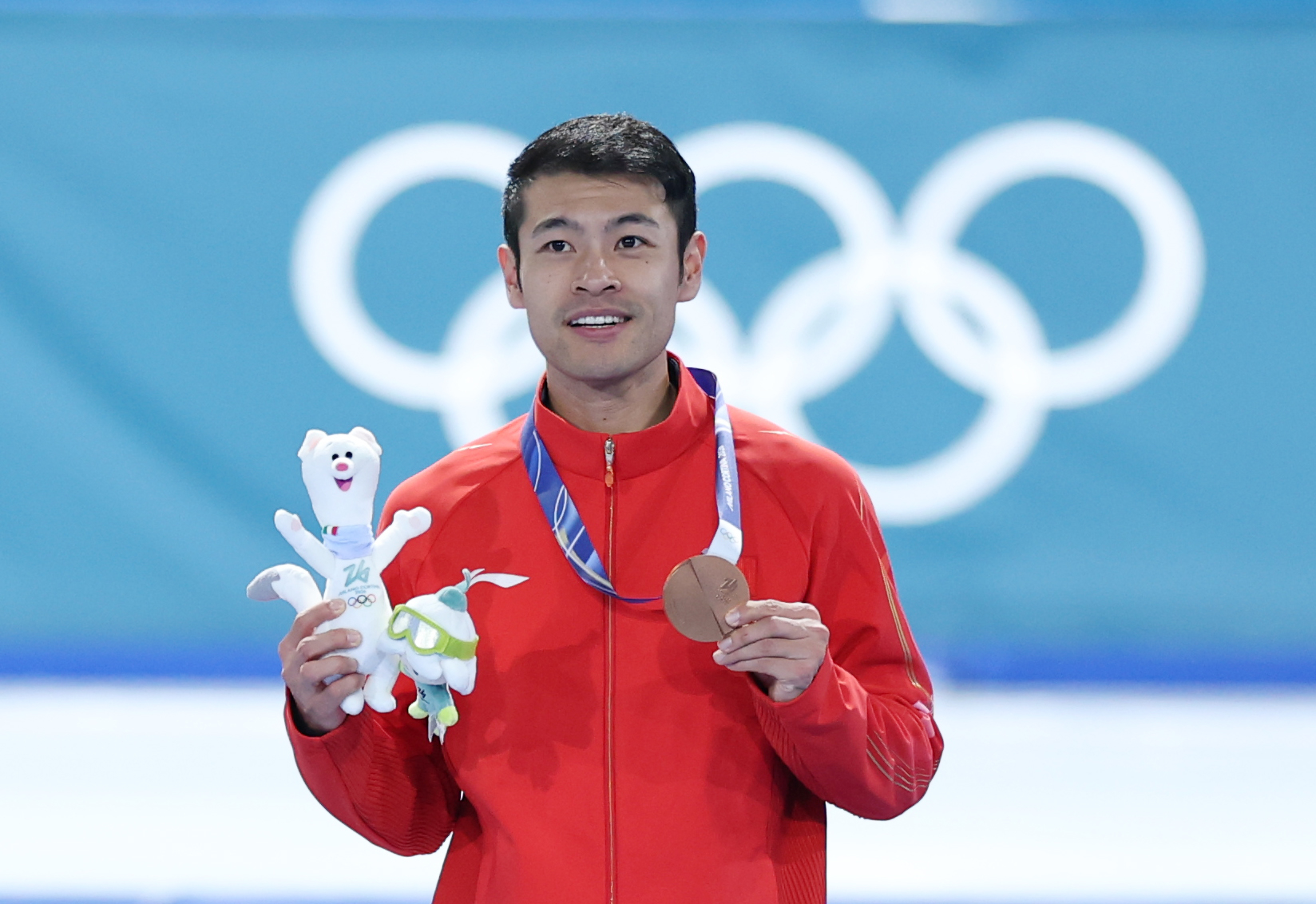 当地时间2月11日,米兰-科尔蒂纳冬奥会速度滑冰男子1000米决赛在意大利米兰举行,中国选手宁忠岩获得铜牌。新华社记者 李京 摄