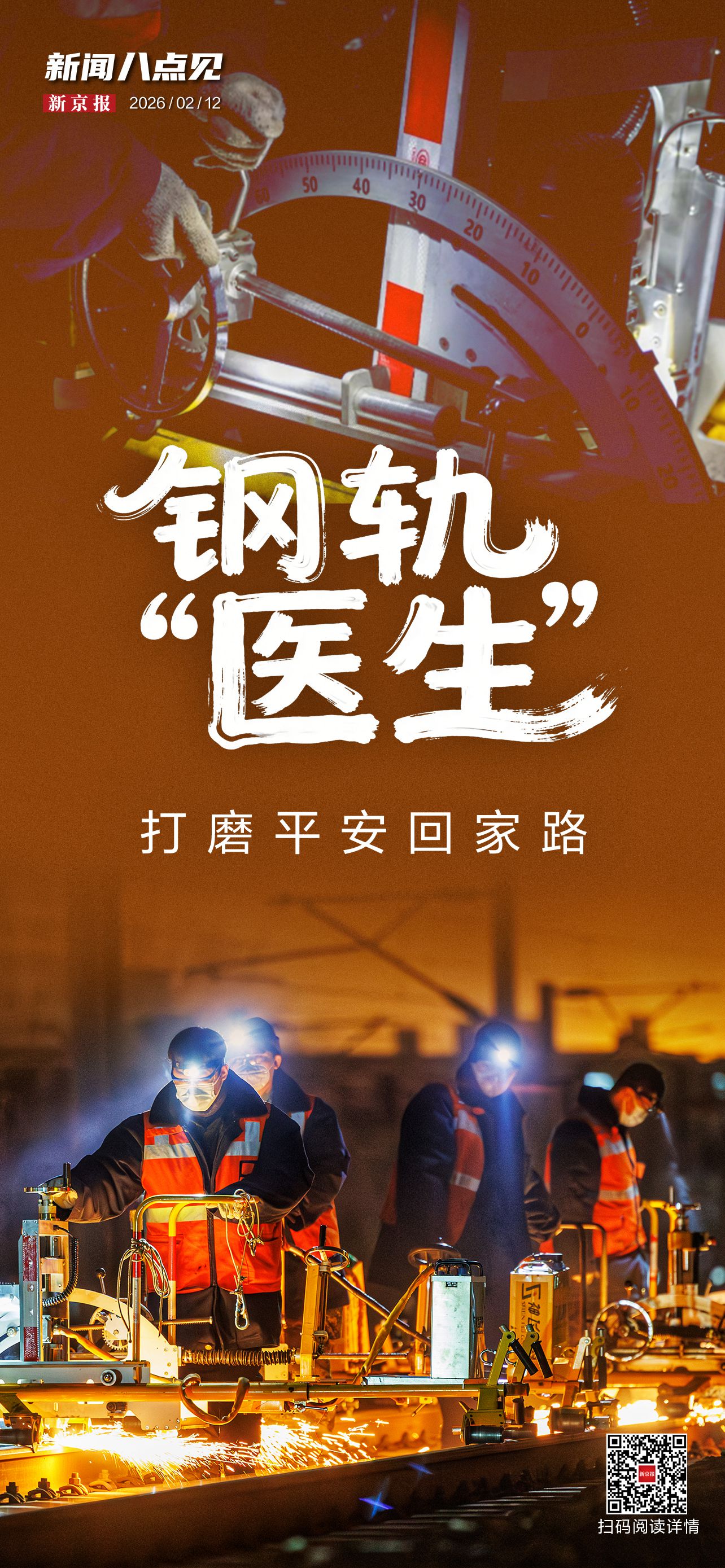 2月10日凌晨,当城市沉入梦乡,北京南站铁路轨道上,8个“00后”铁路工人身着橙色反光防护服,每人推着一台200多斤的打磨机,与钢轨碰撞出串串金红色的火花,如同深夜绽放在铁道上的“钢铁焊花”。
