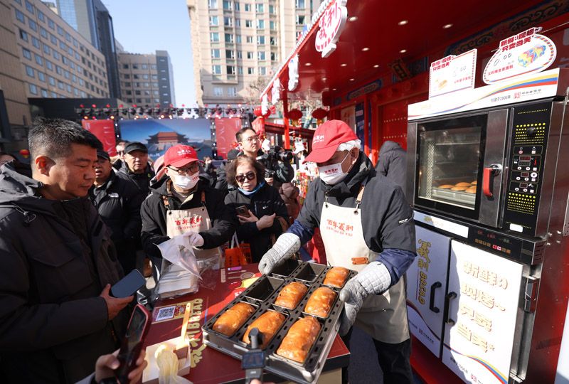 2月12日 ,北京隆福寺新春市集,义利现烤面包香气诱人。义利面包作为北京老字号,承载着几代人的集体记忆。义利烘焙师张立国说,总书记购买了义利现烤的“大果子”和维生素面包,一共花了14元。“总书记说,小时候住胡同时吃过义利的黄油卷。他说,‘一边吃着义利面包,喝着北冰洋汽水,是我们小时候感到最快乐的事’”张立国回忆道。