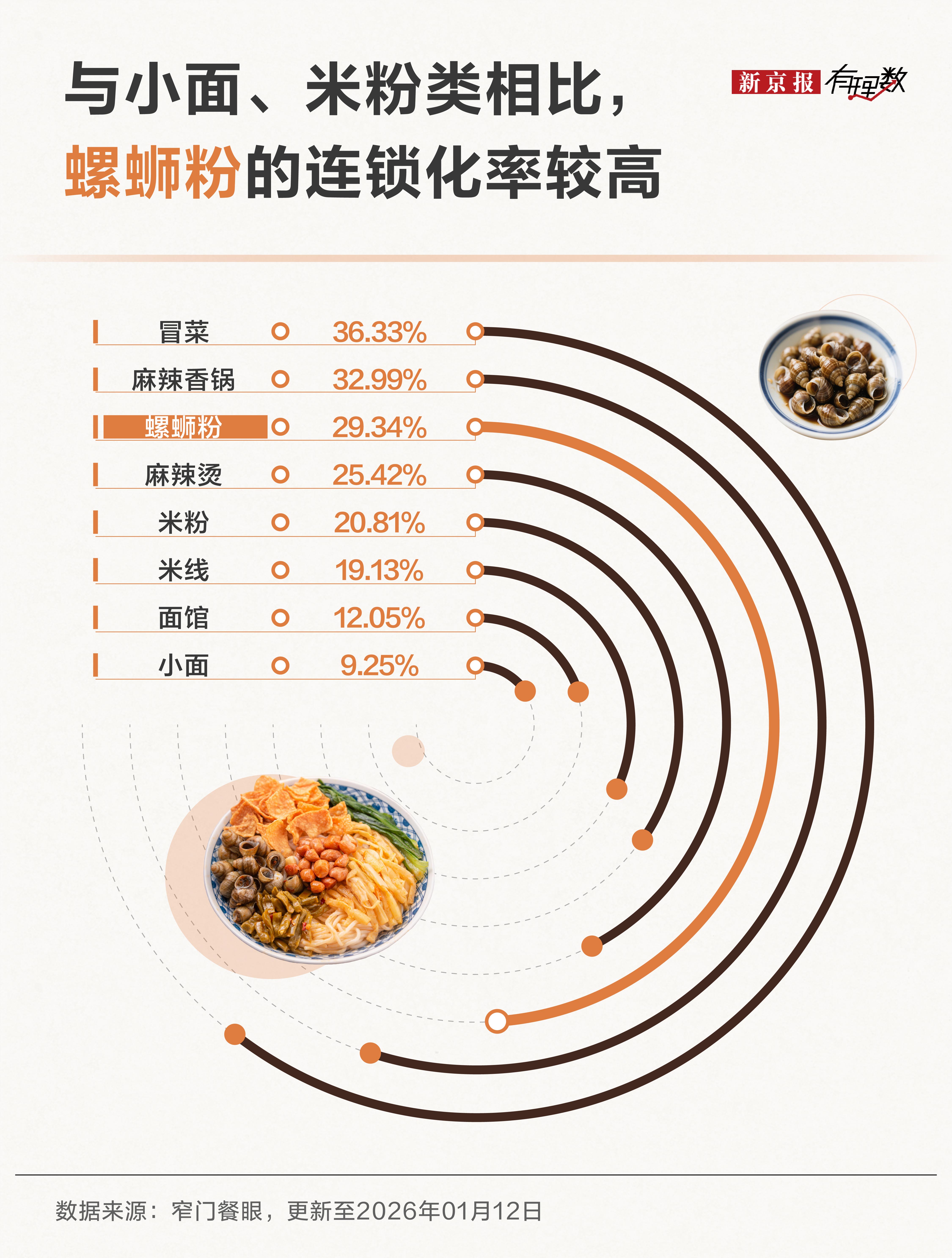 虽然小吃高端化这条赛道上有不少“新贵面馆”的案例,但螺蛳粉赛道拥挤,连锁化高,这意味着行业已经形成了成熟的供应链与标准化的运营模式,也从侧面证明平价化、规模化是螺蛳粉行业的核心发展逻辑。
