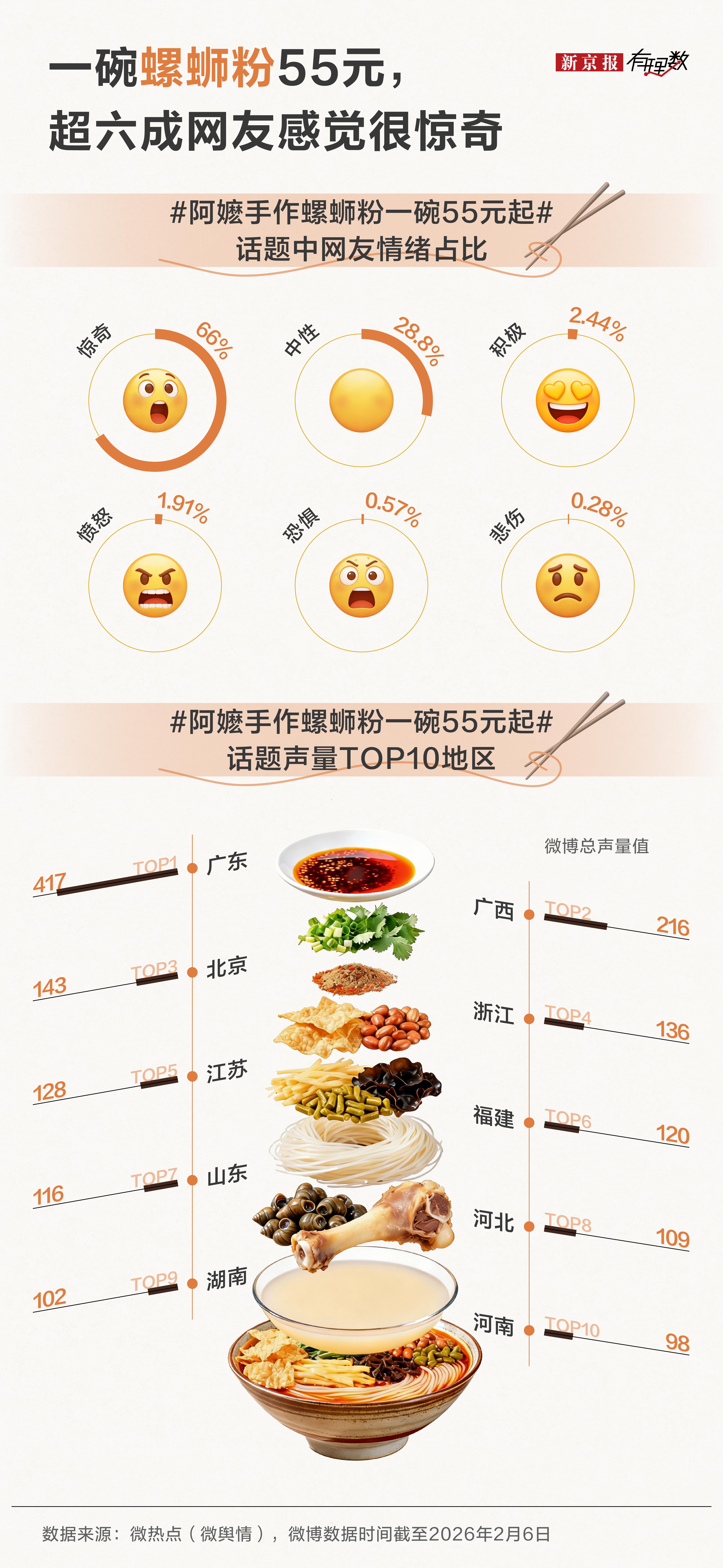 参考资料:封面新闻《“阿嬷手作”55元一碗螺蛳粉被吐槽贵 店员:最近风评不佳,但售价高是有原因的》