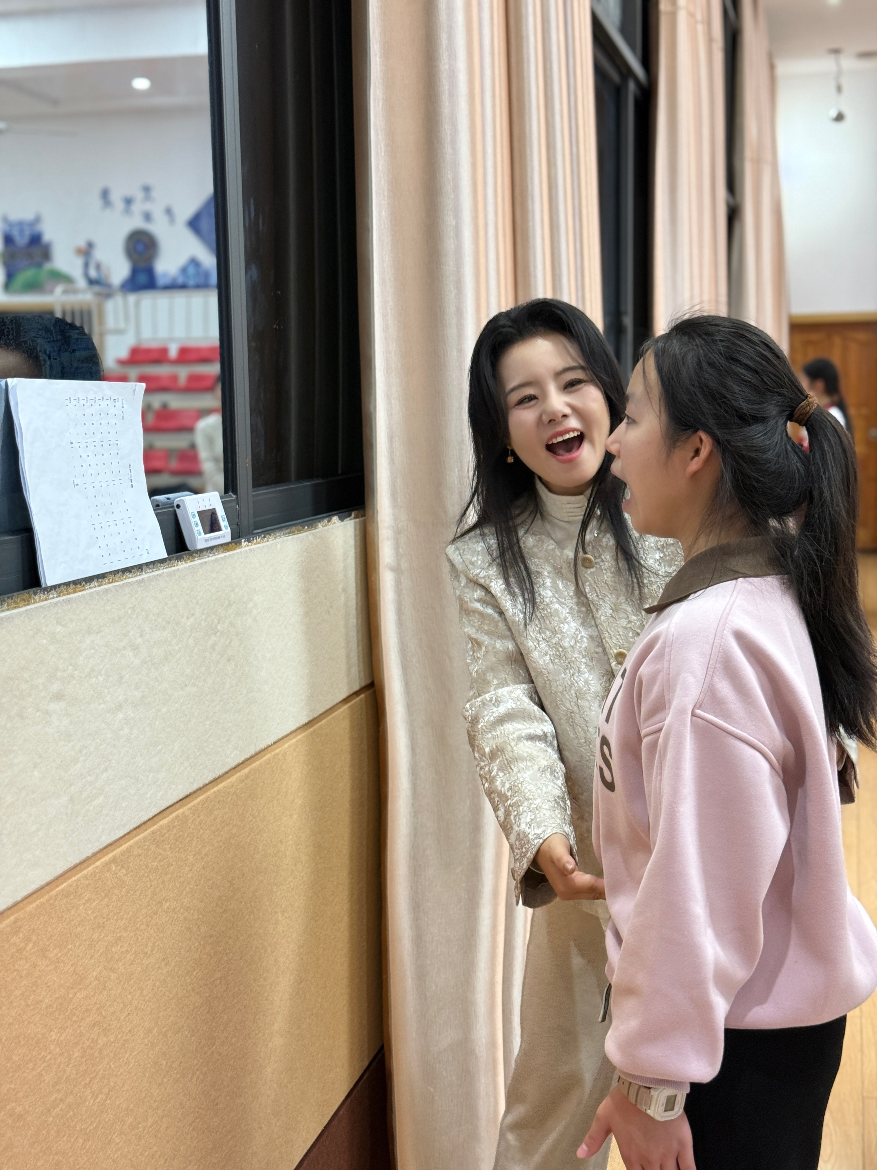 龚琳娜在教深度听障的孩子唱歌。 受访者供图