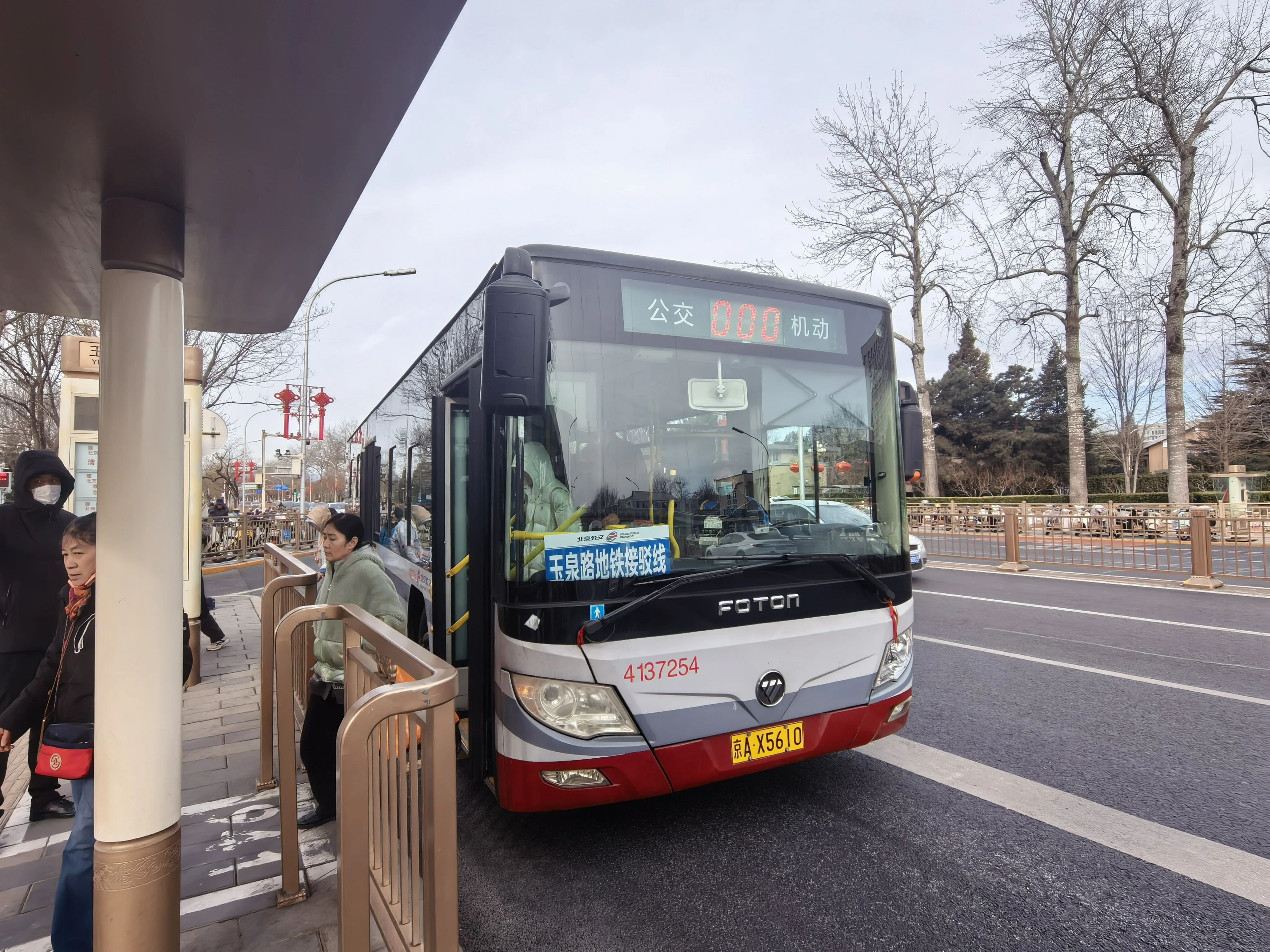 新开玉泉路地铁接驳临线。从玉泉路口西,沿地铁1号线向西,接续地铁运输。沿途共设站位6处,首钢试验厂、石景山古城、京燕饭店、京原路口东、地铁八宝山、玉泉路口西,覆盖首钢园、地铁古城站、石景山游乐园、地铁八角游乐园站、地铁八宝山站及地铁玉泉路站等重点区域和轨道站点,在临时封站停运期间,全力保障沿线市民快速接驳地铁1号线玉泉路站。营业时间:首钢试验厂5:30-23:20,玉泉路口西6:30-次日00:20。线路采取大中型车辆混配,根据客流安排高峰间隔,计划工作日高峰间隔3-4分钟,平峰根据沿线客流情况灵活配置运力。