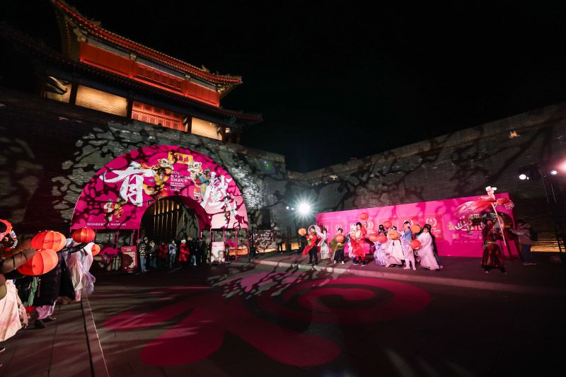 夜幕下的宛平城。本次庙会推出“新春限定版通关文牒”,包含宛平城墙门票、新春祈福牌及三大特权,游客可打卡数十个宝藏点位集章抽奖,解锁商户折扣。