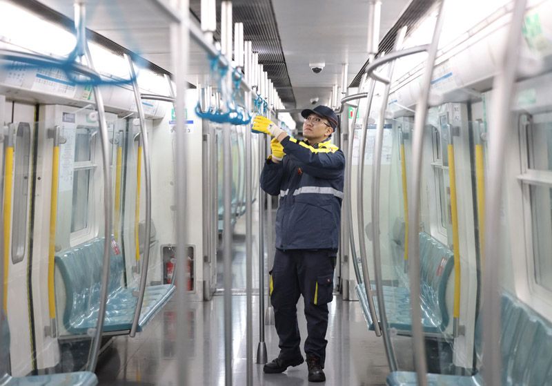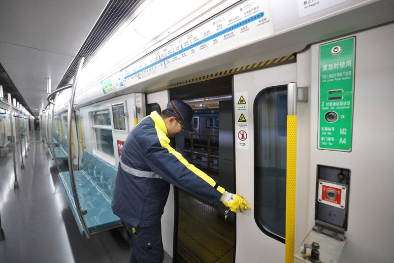 车门是一个关键点。李易将车门开到解锁位,打开上方的罩板,查看内部丝杠等传动装置。“丝杠负责传动,如果它出故障,门就可能打不开。”门检查完毕恢复后,他还会用手再推拉一次,确认闭合到位、严丝合缝。