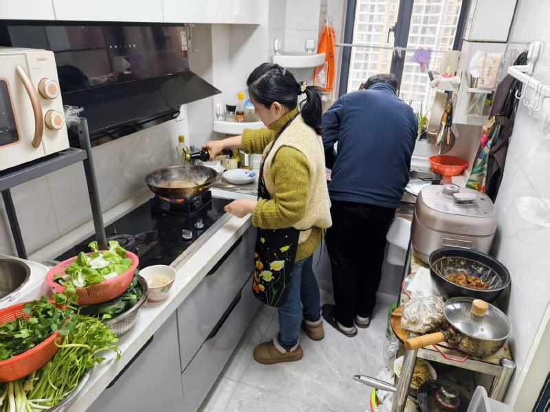 兄长浦帅与嫂子已接过母亲肩上的重担,操持祭祖所用的菜肴。