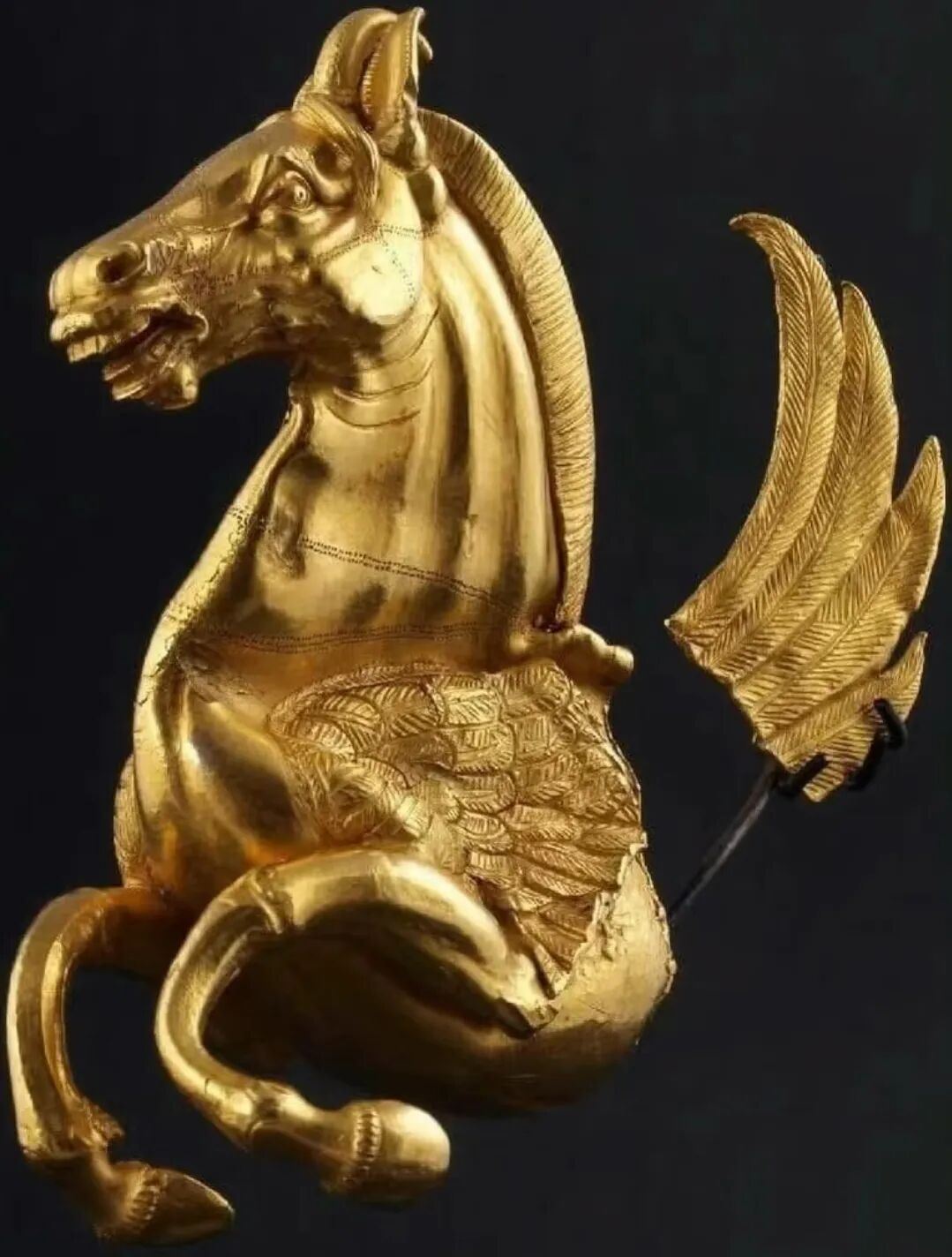 保加利亚拉兹格勒瓦佐沃村出土的公元前五至四世纪色雷斯人制造的金马雕塑。