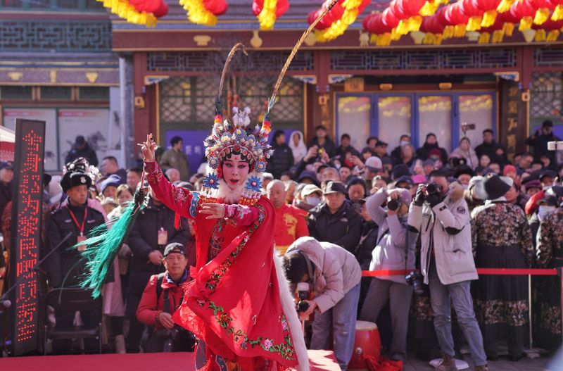 厂甸庙会开幕式,北京京剧院一级演员索明芳表演原创京剧《龙马献福》,为游客送上新春祝福。