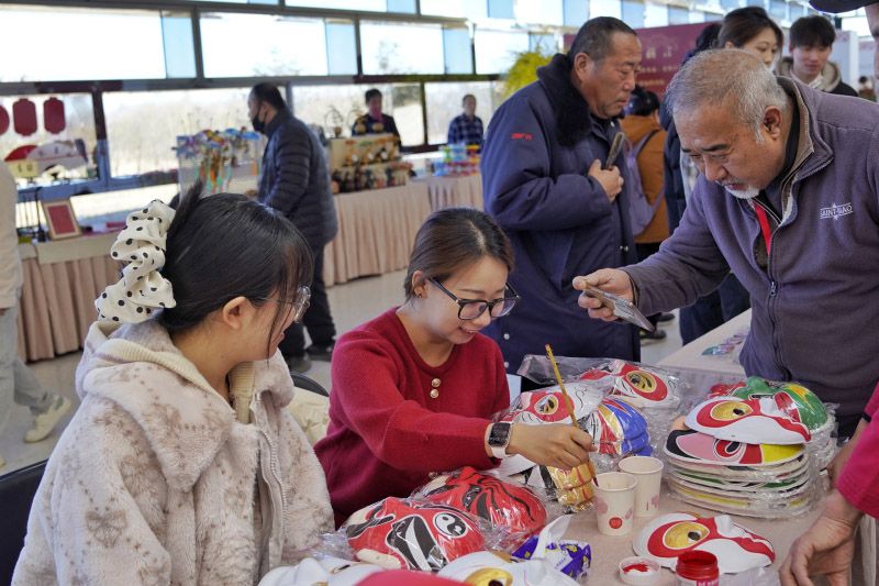 游客体验画脸谱。游客还可参与“寻马”打卡挑战,寻找到藏于馆内的五个打卡点,完成“马文化”在线科普答题,即可解锁限量2026张的“路县故城马年特色窗花”。