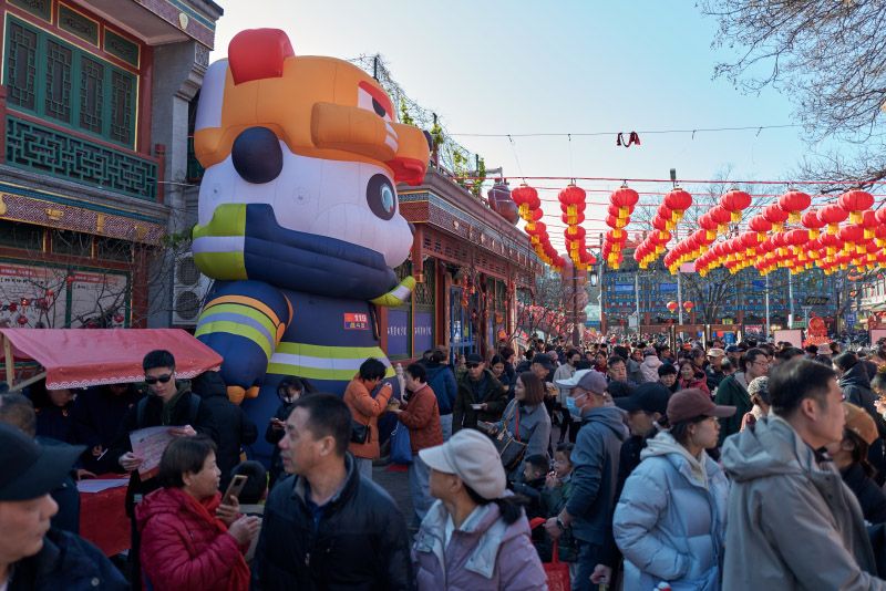 2月18日,大年初二,西城消防卡通形象矗立在厂甸庙会入口处。正月初一起,厂甸庙会与大观园庙会便迎来客流高峰。北京市西城区消防救援支队坚持“预防在先、服务在前”的工作理念,全程守护两大庙会消防安全,让广大群众在春节期间能够安心游园、购物,度过一个平安祥和的新春佳节。