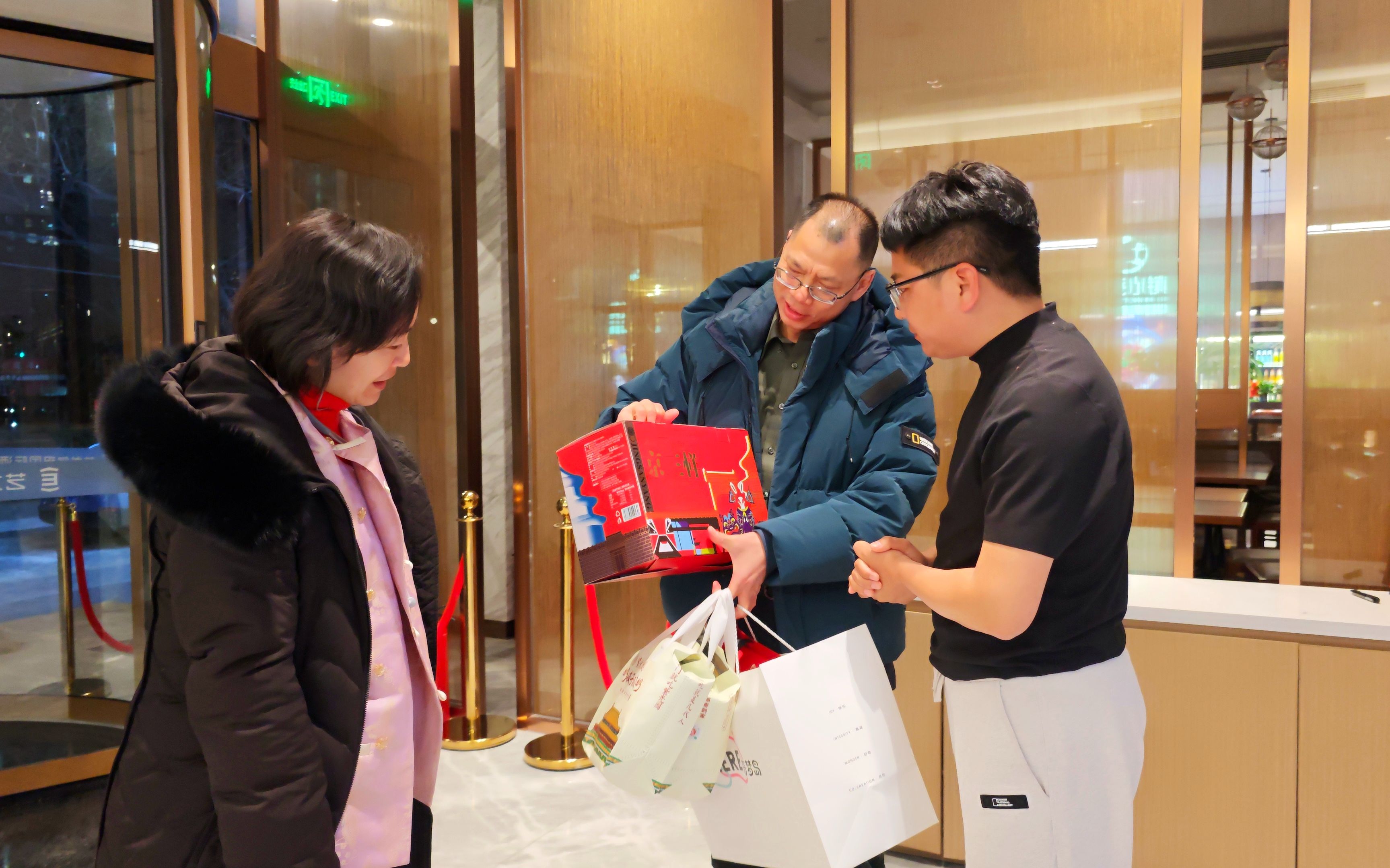 得知了郁章宝一家的故事,北京市文旅局资源开发处处长张靖,丰台区文旅局党组书记、局长吴婧特意找到他们所住的酒店,送上了精致的“北京礼物”,向大家拜年。