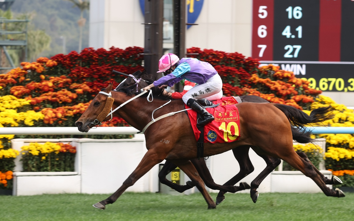 “桃花开”以出色的姿态在沙田马场赢得马年杯。