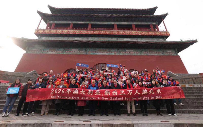 澳洲游客在鼓楼前合影。2026年是北京打造全球旅游目的地和“中国入境旅游首选地”的关键之年,北京将持续聚焦产品精品化、服务国际化、宣传多元化三大方面,推动入境游发展。