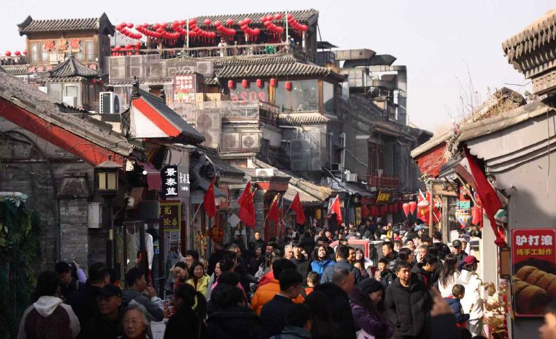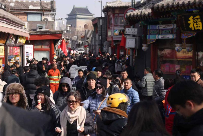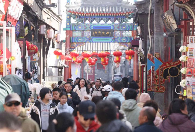 2月20日,正月初四,什刹海周边热闹非凡,迎接八方来客。市民游客在美食、美景和丰富的民俗体验中感受地道的京城年。图为烟袋斜街游客熙熙攘攘。