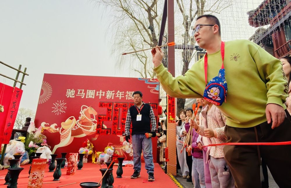 游客参与投壶祈福游戏。尽显新春佳节的浓郁年味。