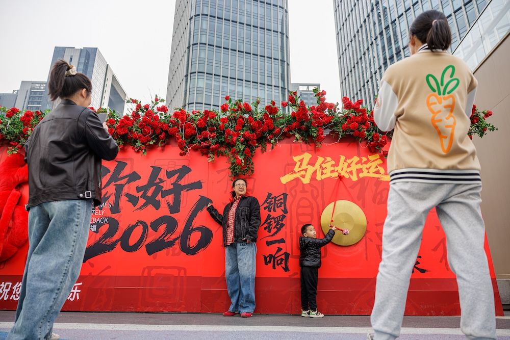 游客在打卡点拍照。