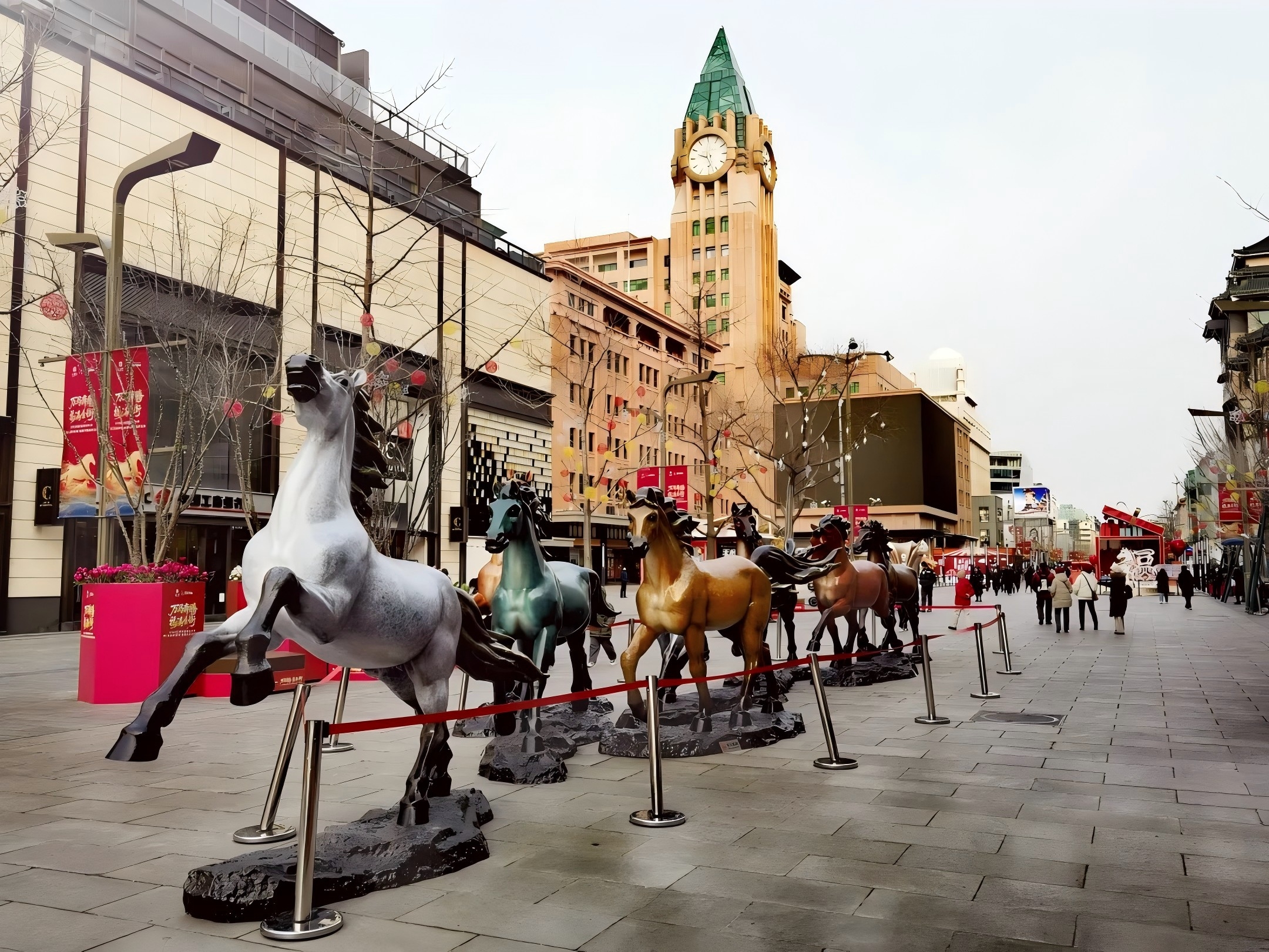 中国工艺美术大师朱炳仁在王府井大街打造“王府八骏”艺术雕塑群。受访者供图