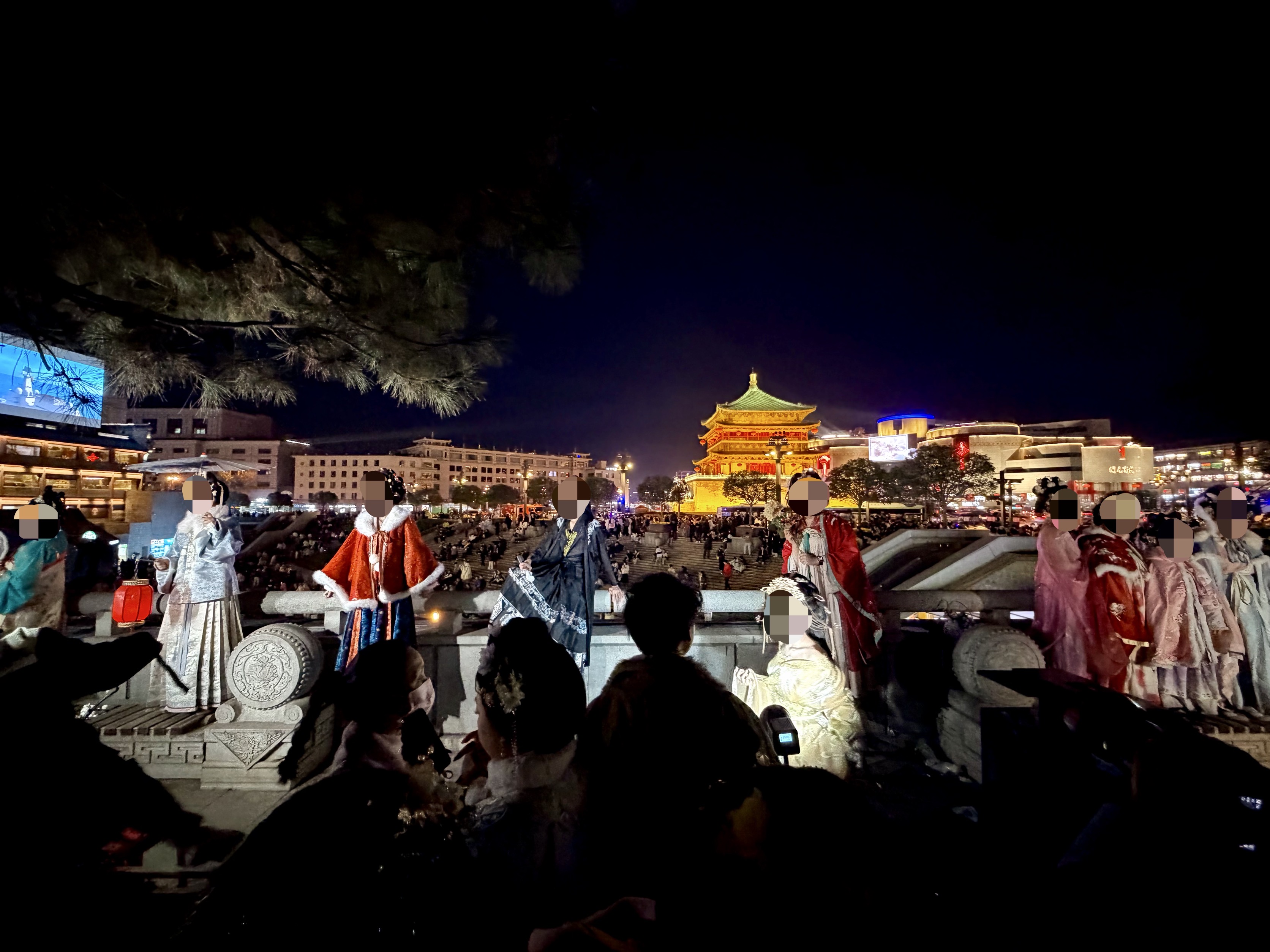 “宝藏旅游地”“网红城市”“文化古都”等高赞评价,仿佛终年和这座城绑定。短视频平台上,抬手就能刷到穿古装的游人在景点前合影,镜头摇过一张张精致的仿古妆容,响起《神话》《琵琶语》等歌曲的旋律。镜头拉远,夜空下的大雁塔钟鼓楼和城墙,被灯光勾勒出庄重的线条。