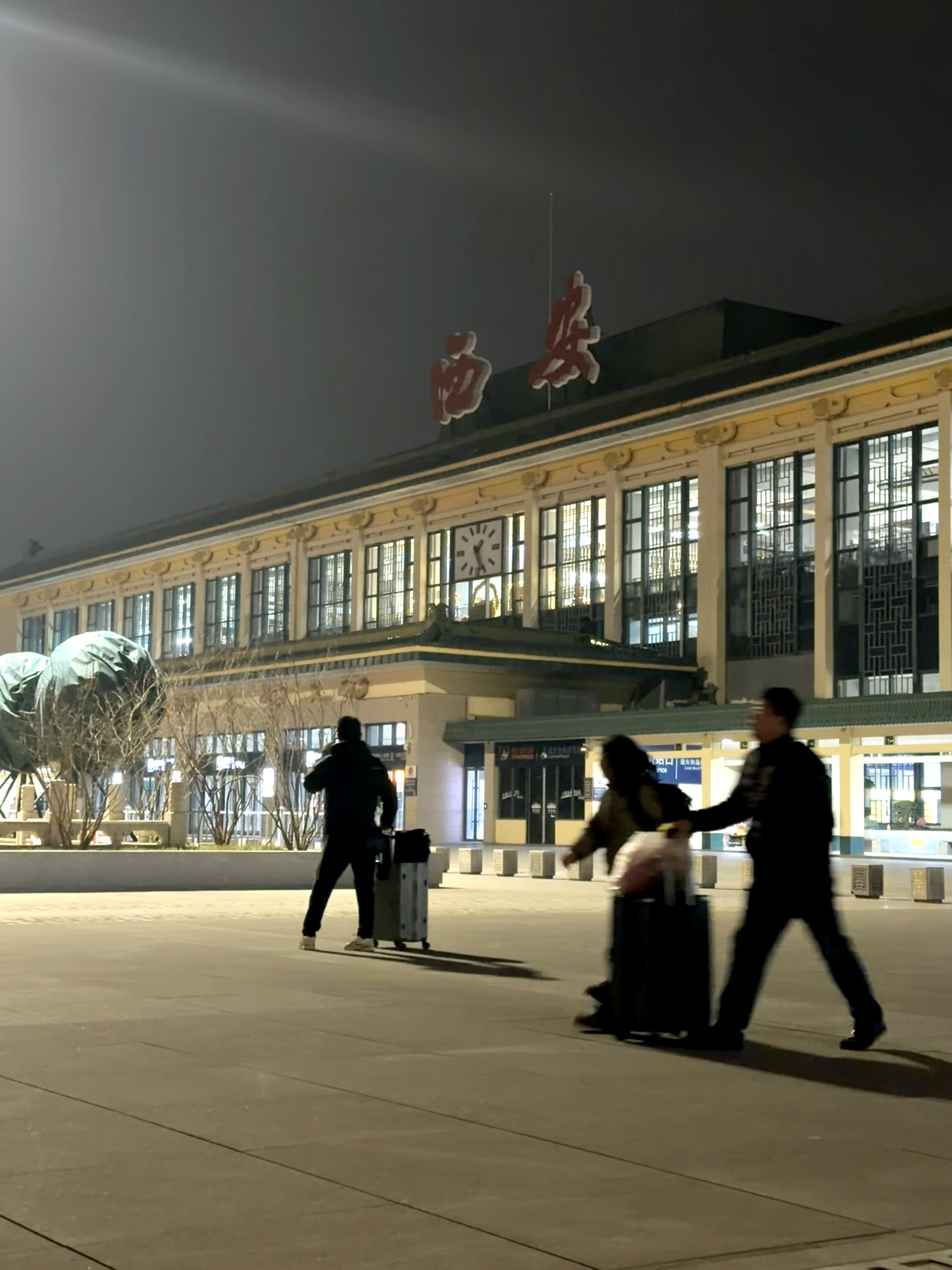 在出站口,我看到又一批人抵达西安。大人忙着接打电话,孩子穿着马面裙蹦跳。深夜,行李箱轮子的滚动声听起来格外响。一个骑电动车的人来询问,住不住旅馆。