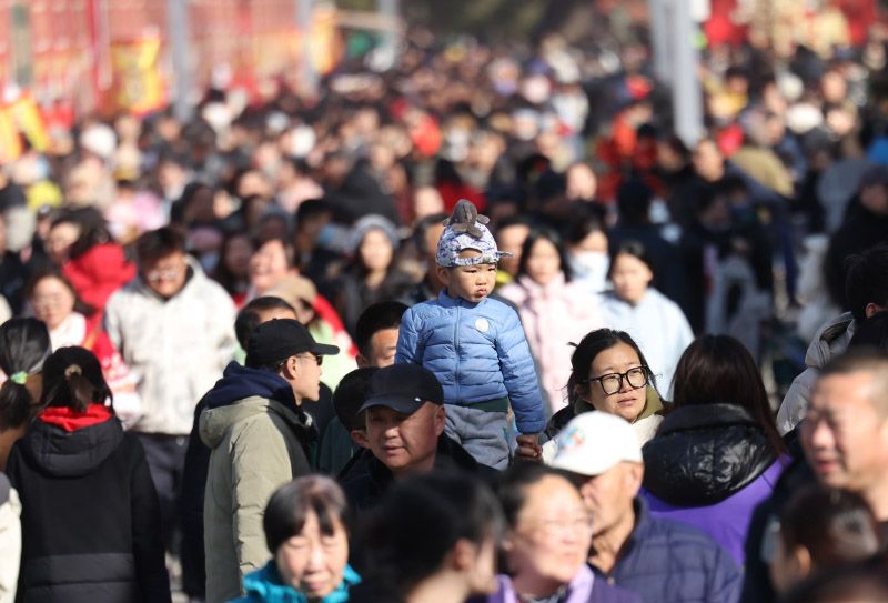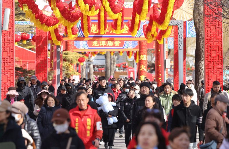 2月23日,农历大年初七,第四十届龙潭春节文化庙会最后一天,依旧有大量游客涌入庙会。