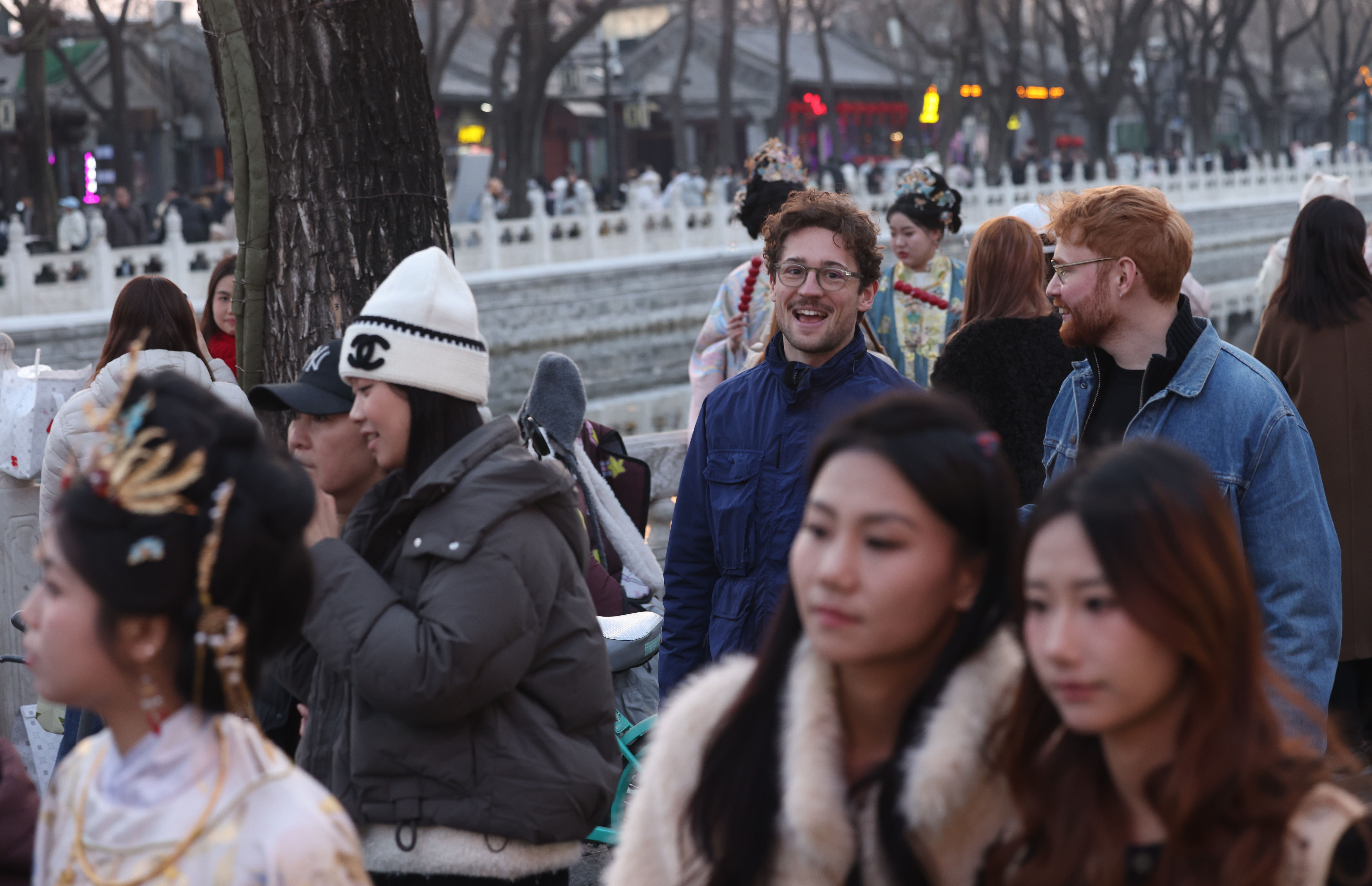 2月20日,外国游客游览什刹海。新京报记者 李木易 摄