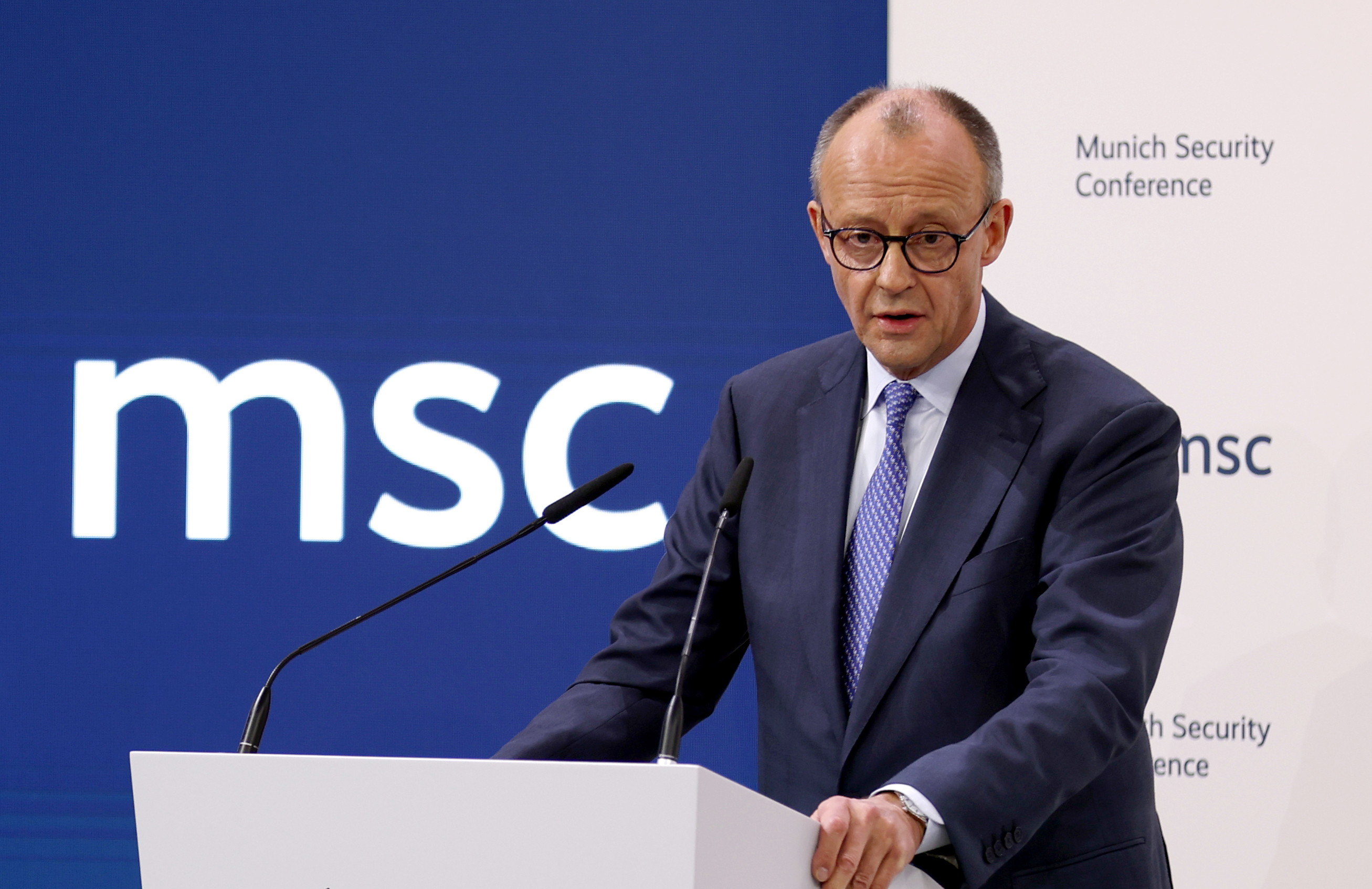 ▲当地时间2月13日,德国总理默茨在第62届慕尼黑安全会议开幕式上致辞。图/新华社