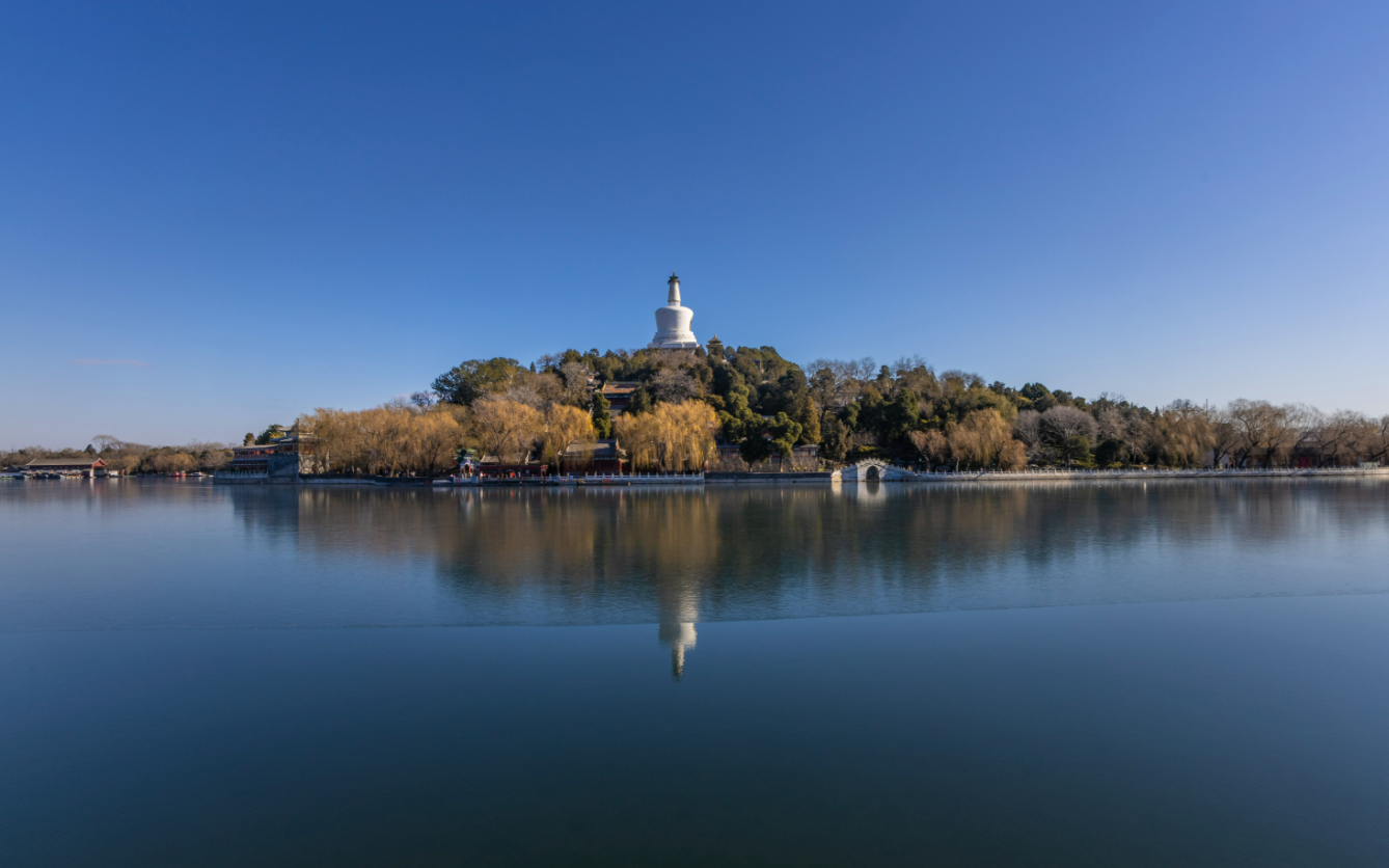 ▲蓝天下的北海公园白塔。新京报记者 王远征 摄