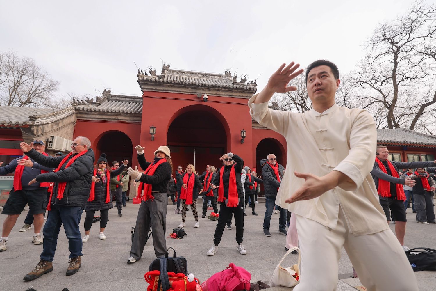 2月20日,鼓楼,刚柔并济的太极招式让澳洲游客纷纷驻足跟学,沉浸式感受中华优秀传统文化的独特魅力。