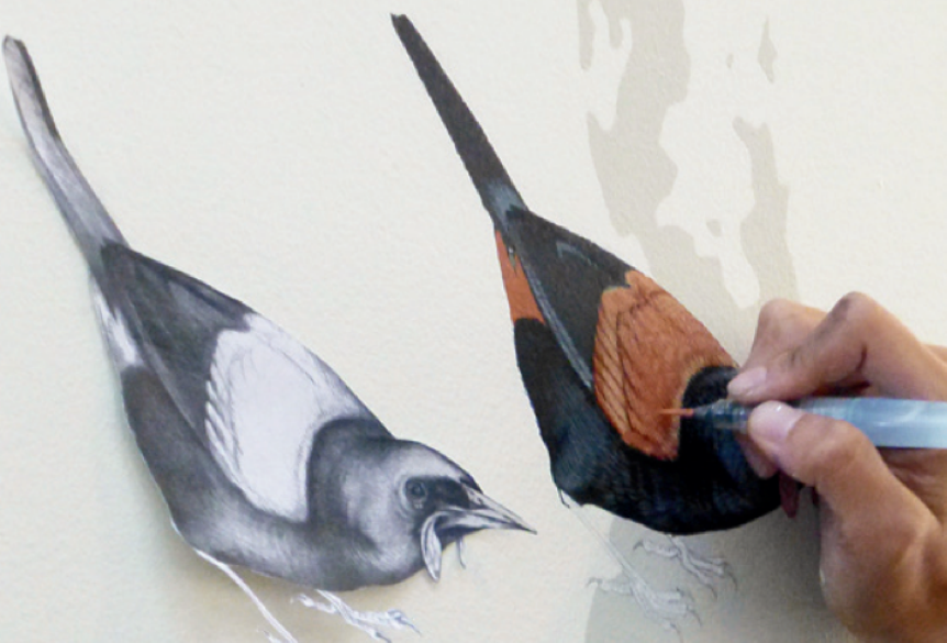 北岛鞍背鸦。第一只鸟:完成于2014年8月18日。《鸟墙——康奈尔鸟类学实验室巨幅壁画诞生记》插图