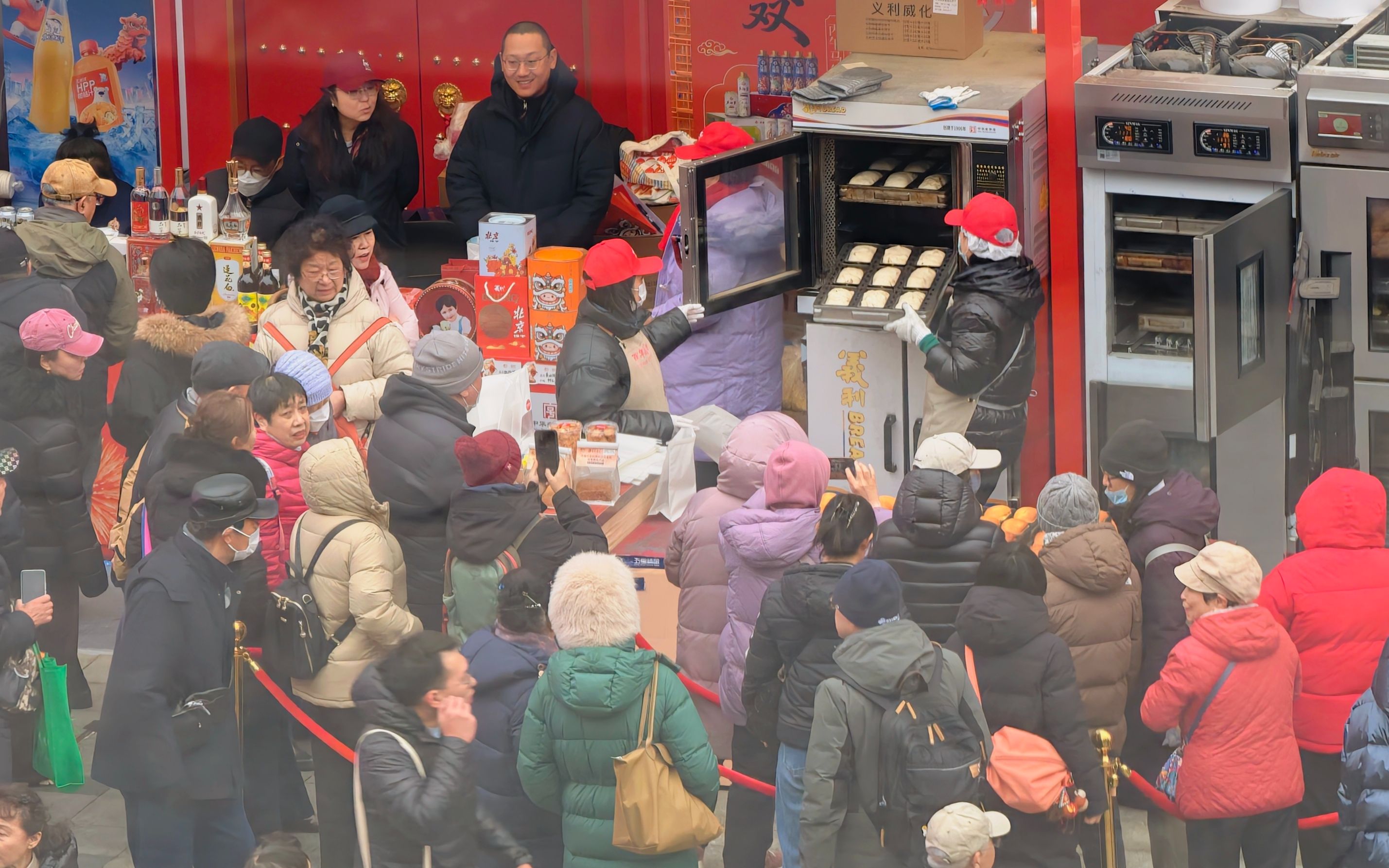 春节期间,隆福寺新春市集上,义利面包摊位前排的长队成了一景。