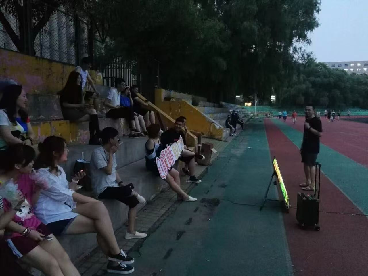 再往后,他们又陆续去了几所学校,在空旷的操场上、在地下通道、在雨中的主席台,演员常比观众多,他们给这些零星的粉丝讲,也给自己讲。