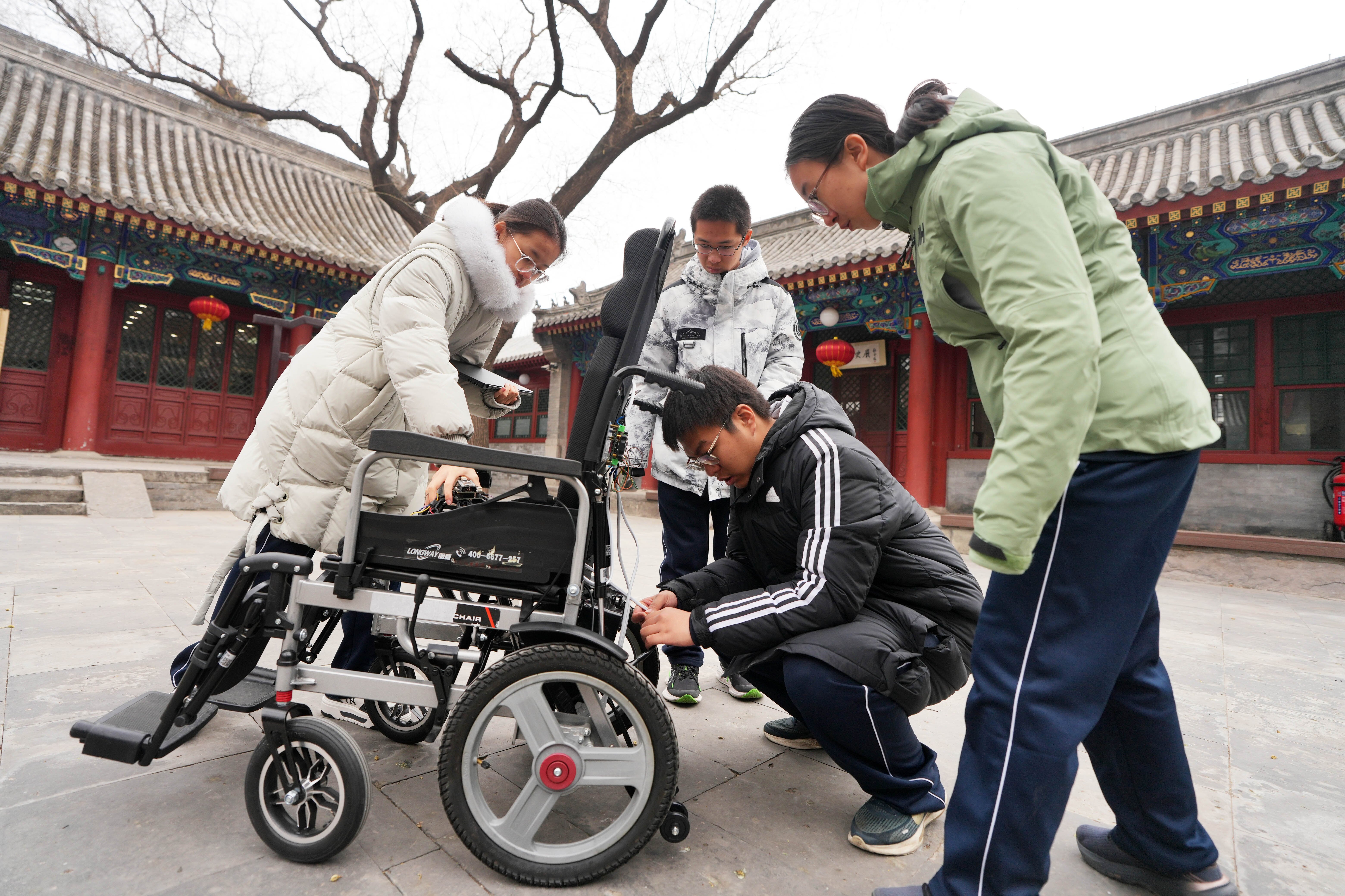 王宸悦带来的项目,就是从十三中创客社团走出的“四届学生接力成果”——一款专为渐冻症中早期患者和重度残障人士设计的脑电控制轮椅。2025年,该项目获得了包括全国青年科普创新实验暨作品大赛全国总决赛特等奖、北京青少年科技创新大赛一等奖等多个奖项。