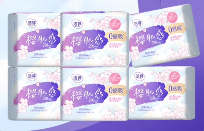 洁婷“樱肌感”系列以“无感体验”为核心,采用1.0D柔弹棉,触感细腻温和,贴合肌肤不刺激。独特的脉络式导流通道能迅速分散经血,避免局部堆积,保持表面干爽。产品厚度控制优秀,即便在炎热夏季或长时间上课时使用,也不会产生闷热黏腻感。多尺寸选择(245mm/290mm等)适配不同流量需求,是注重日常舒适感学生的优选。