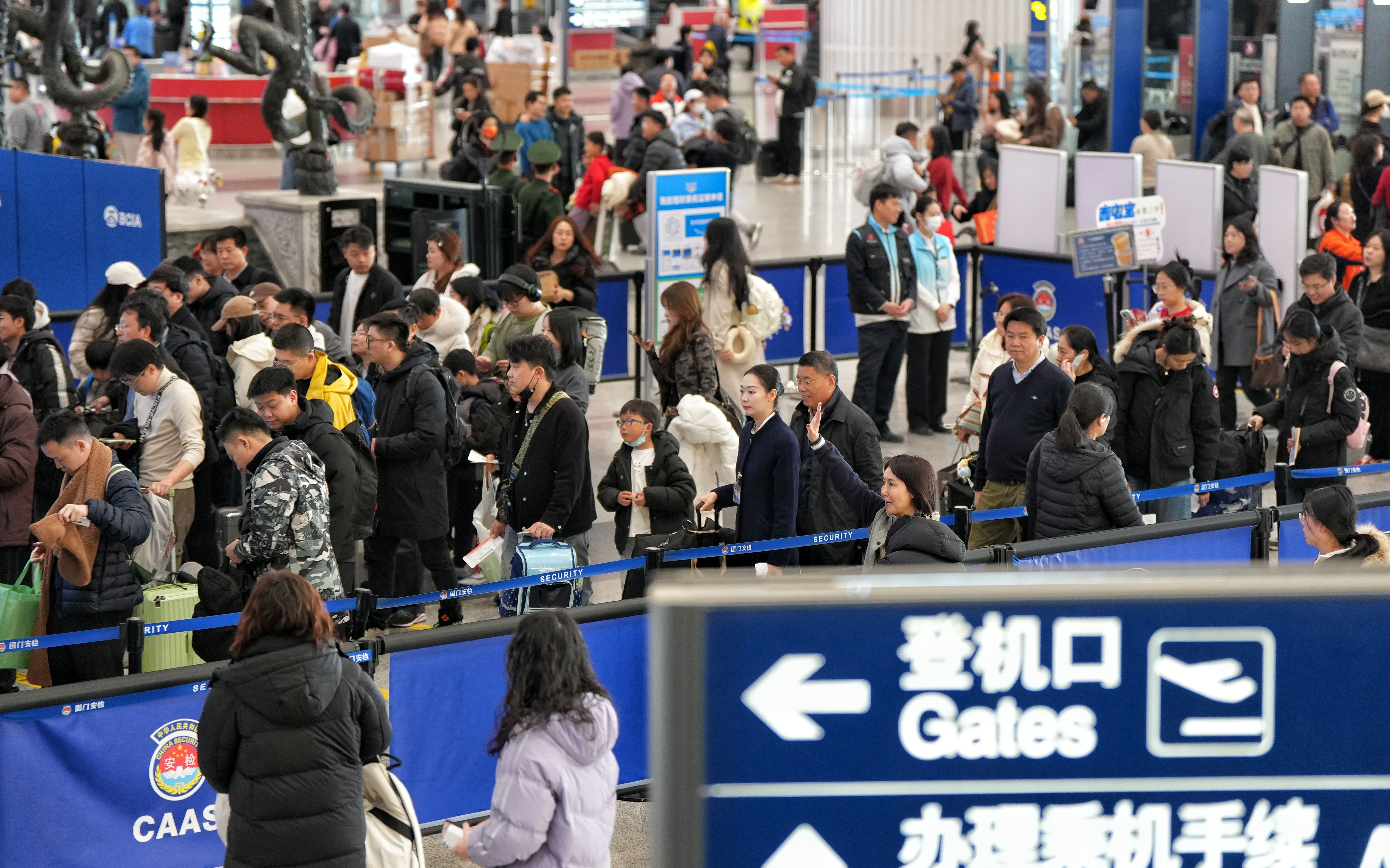 2026年2月23日,北京首都国际机场,旅客排队进行安检。新京报记者 陶冉 摄