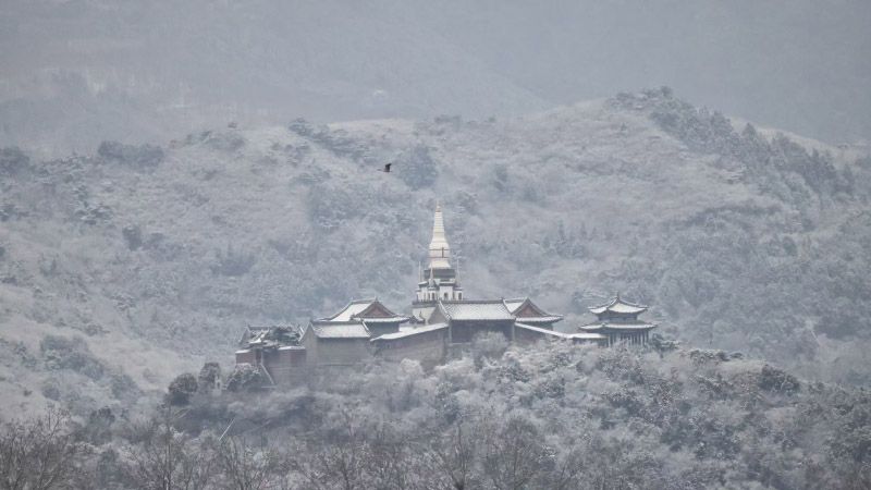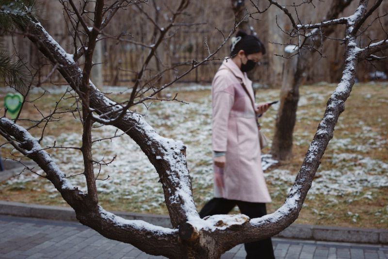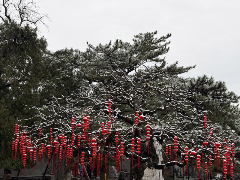 2月27日,大兴天宫院,薄雪轻覆树杈。