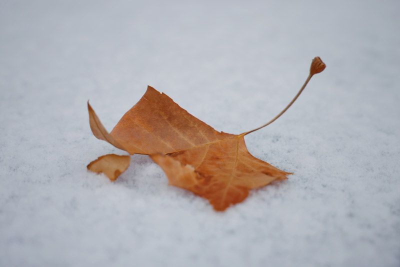 2月27日,大兴天宫院,一片树叶落在薄雪上。