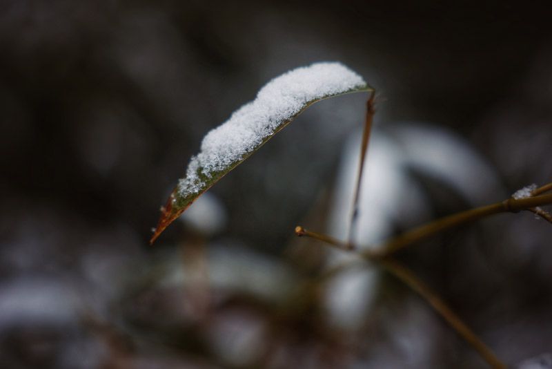 2月27日,大兴天宫院,雪花积在竹叶上。