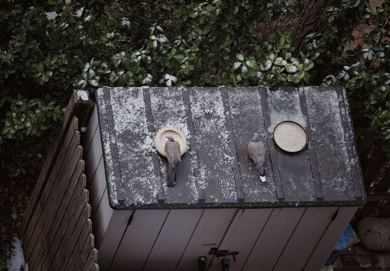 2月27日,四惠,两只斑鸠在细雪中啄食。