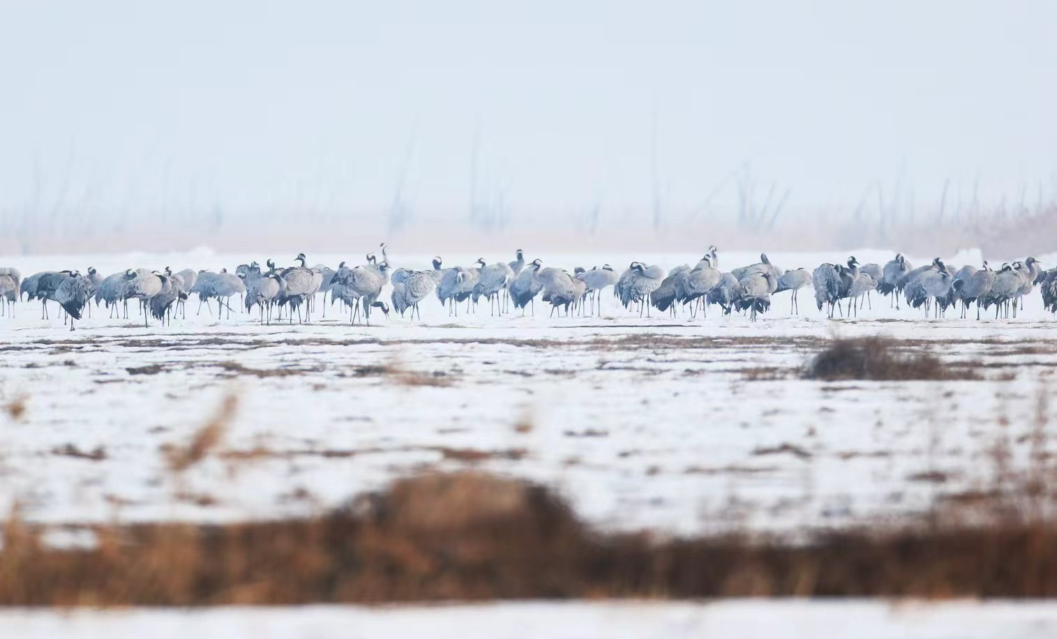 其中数量最多的为灰鹤,目前观测到 6800余只,它们在周边农田间觅食。