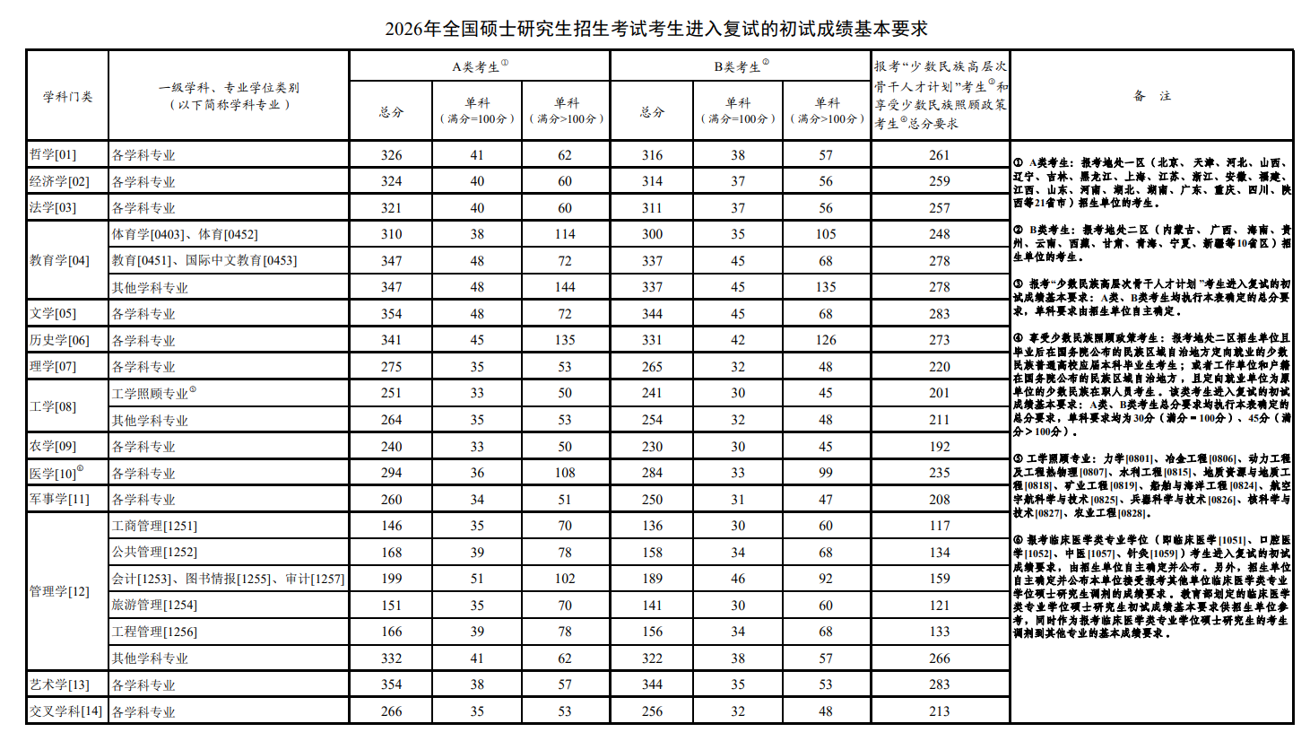 《2026年全国硕士研究生招生考试考生进入复试的初试成绩基本要求》(国家分数线)